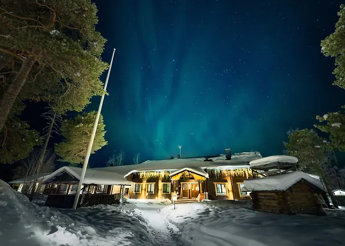 Nestled beside Lake Inari, the 4-star hotel is ideally situated just five minutes from the Sámi village of Inari, making it an excellent base for exploring local culture and history. Accessible by both land and air, the hotel is a convenient starting point for various excursions, including visits to the Siida Museum and engaging with local life in the nearby PaPaNa Bar. The enchanting Northern Lights set against the serene backdrop of the woods make this a destination not to be missed.